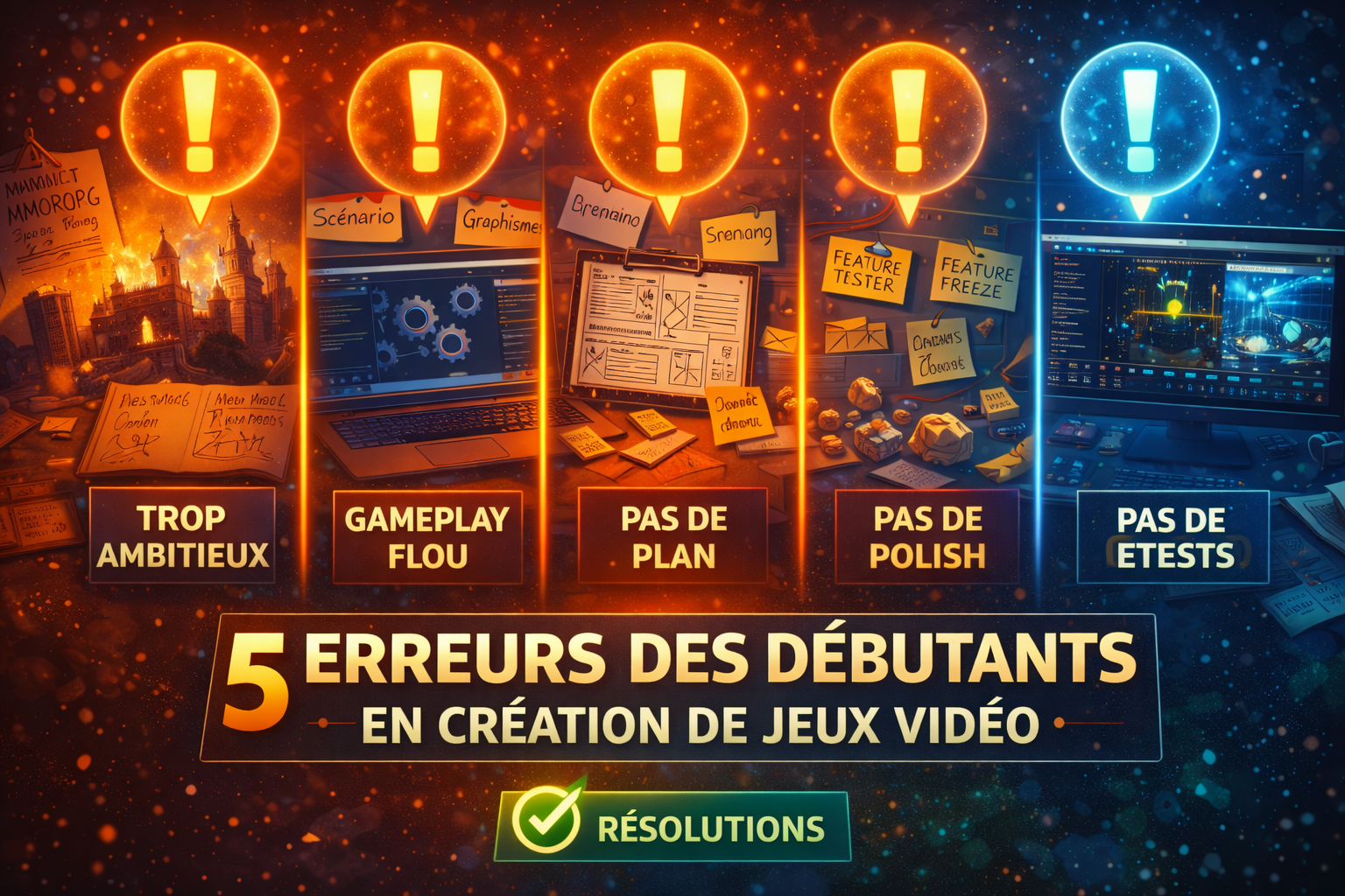 Créer son premier jeu vidéo peut sembler difficile, mais en évitant ces 5 erreurs, vous augmentez considérablement vos chances de réussir :